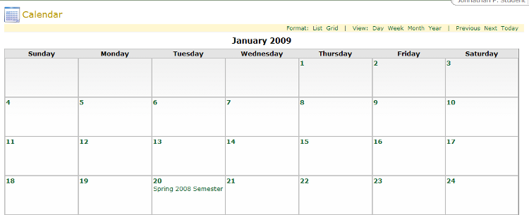 Items entered in the calendar can also be displayed on the course home page as well as the user home page, provided that calendar nugget is enabled on the page.