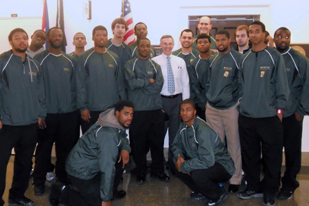 MCCC Head Coach Howard Levy is pictured, far back on the right.