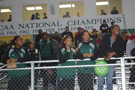 runners on the sidelines. Radio student Matt Nelson announced the