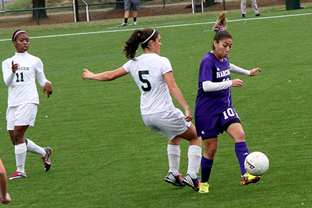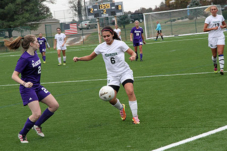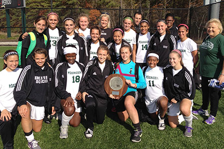 Marinos, who played two seasons of softball for Mercer and ended her career as the college’s all-time offensive leader in 2012, tried out for soccer this year. “Angela is a natural athlete. When we got in goalkeeper trouble and Jackie had to sit out two games, Angela stepped up to play goal. She played two games and posted two shut-outs,” Ogborn-Haywood said.