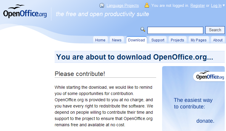 Click on the area where it says "I want to download openoffice.org"