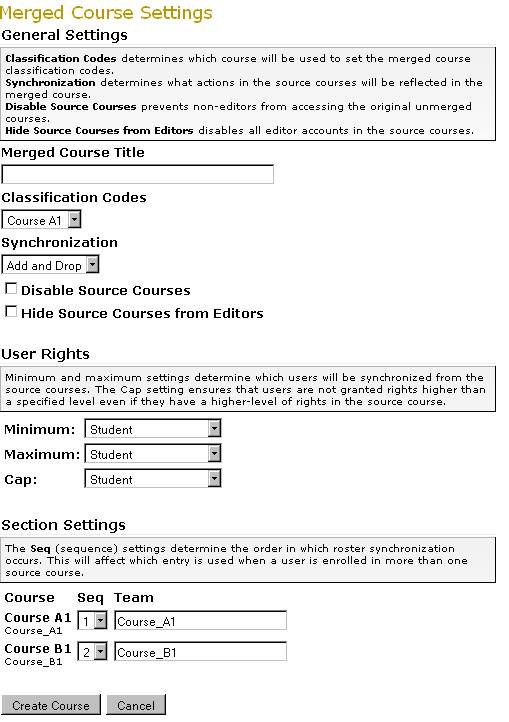 5.) Select the courses to be merged.